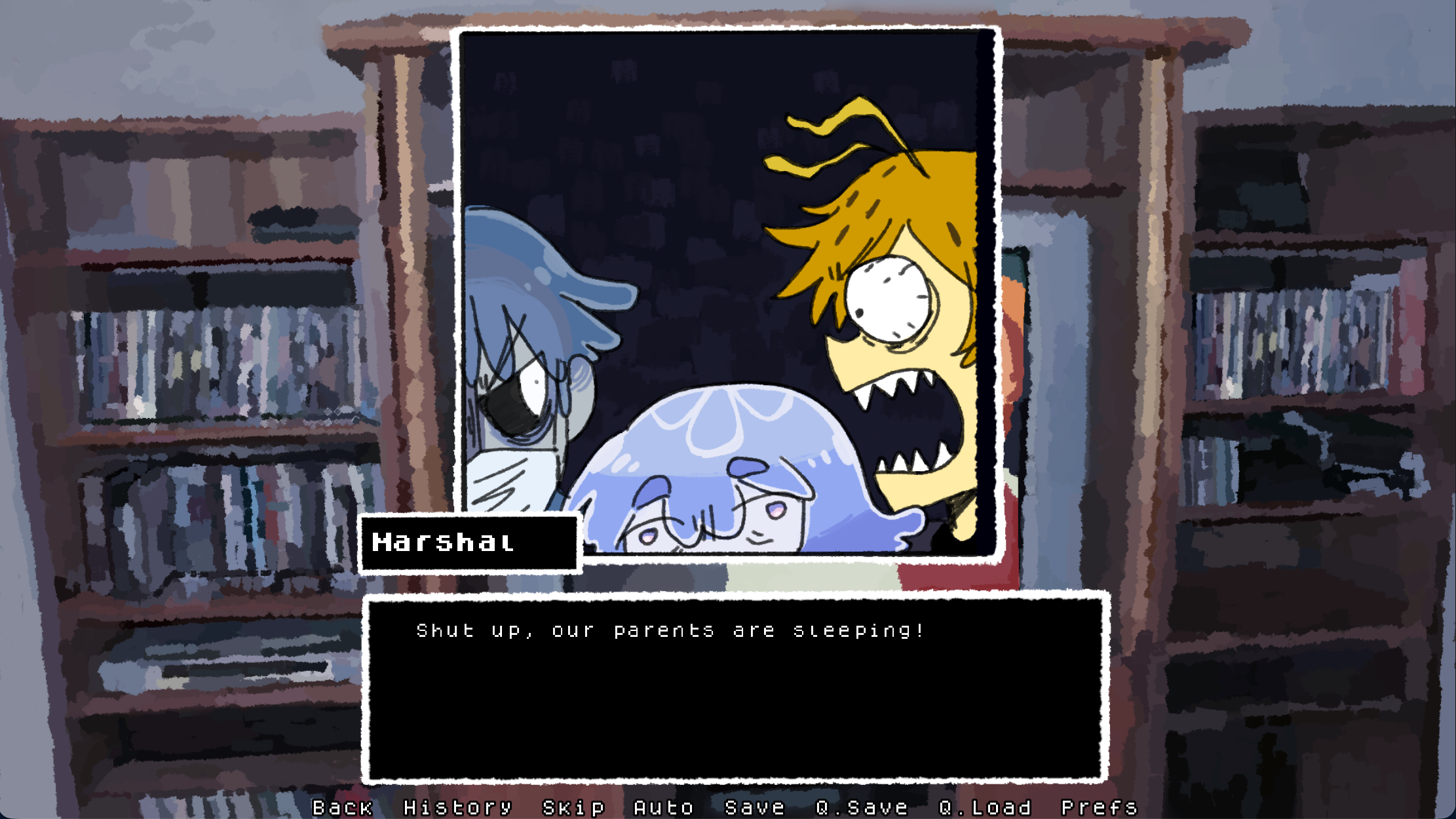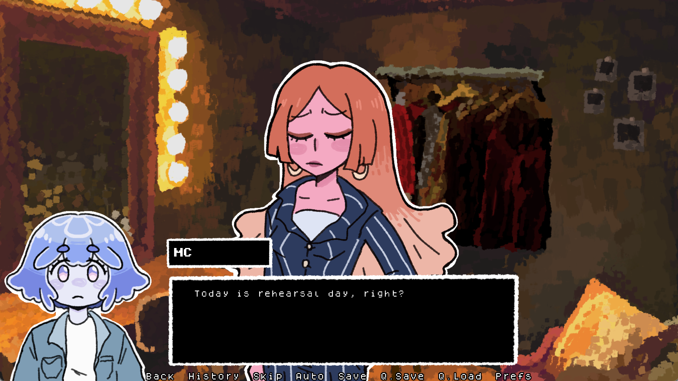 A dark visual novel with humor where you play as a moon jelly girl trying to make it as an indie idol.